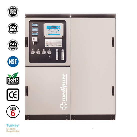 • Medipure XC-9170 serisi Mobil Saf Su Cihazı; Mikro filtreleme, Karbon Filtreleme, Ozmotik demineralizasyon , Quadplex deiyonizasyon, High Boost ,Direct Flow, Auto Flushing, Çift katmanlı saflaştırma gibi opsiyonel özellikleri tek cihazda barındıran (ALL IN ONE) Dünya' nın ilk ve tek 6. nesil saf su cihazlarıdır. Her türlü ortam şartında ve koşulda besleme suyu değeri üzerinden %99,95 performans sağladığı, endüstri uygulamaları ve üretim tesislerinde ispatlanmıştır.
